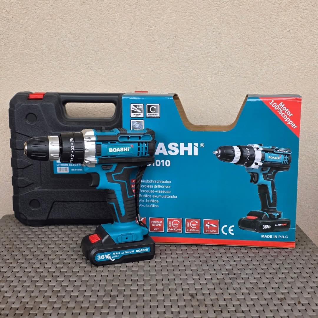 Boashi BS-81010 je snažna i praktična akumulatorska bušilica/šrafilica, savršena za sve vrste kućnih i profesionalnih radova. Zahvaljujući motoru od 100% bakra, obezbjeđuje dug vijek trajanja i pouzdan rad bez pregrijavanja. Opremljena je litijum-jonskom baterijom od 36V koja omogućava dugotrajan rad bez čestog punjenja.
