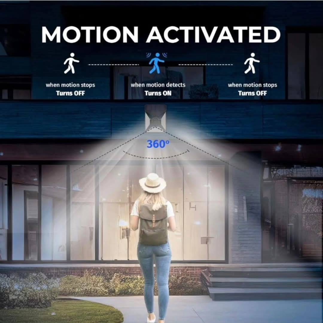 Aktiviran pokretom: Nema potrebe da brinete o uljezima. Lampa ima ugrađeni senzor pokreta koji radi na pokretu. Svaki put kada se detektuje pokret, ugrađeni infracrveni senzor će automatski uključiti svetla, a kada više nema kretanja, svetla će se automatski isključiti.