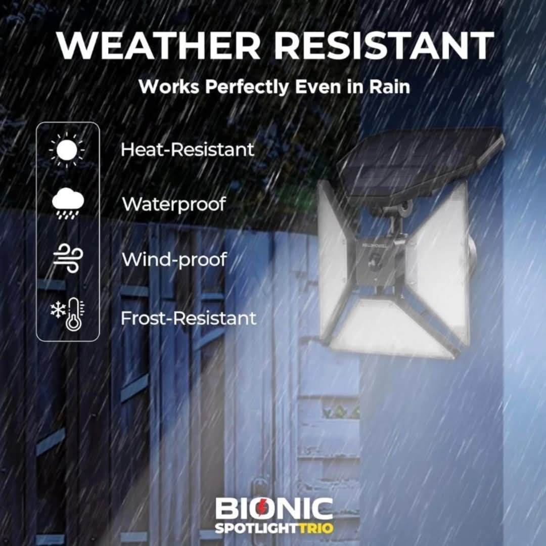 Bežično i bez baterija: reflektor na solarni pogon koji je bez upotrebe ruku i ima prekidač za uključivanje/isključivanje. Bionic Spotlight Trio svjetlo bez baterije što znači da ne morate brinuti o zamjeni baterija.
